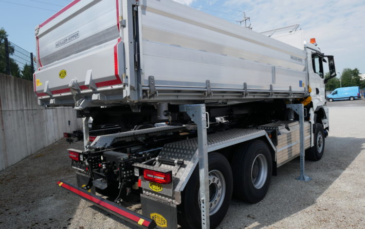 Marchepied à l'arrière, sur la moitié de la largeur droite
